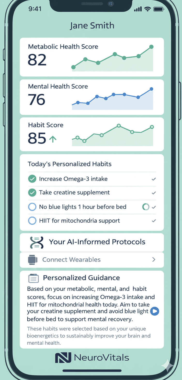 Discover a new path to healing. Our platform unites AI, biomarker tracking, and therapy to address both mind and body - making your progress visible, personal, and truly sustainable.
